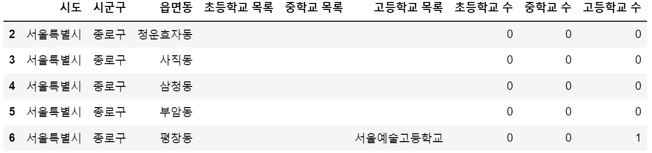 df['중학교 수'] = df['중학교 목록'].apply(count_school)