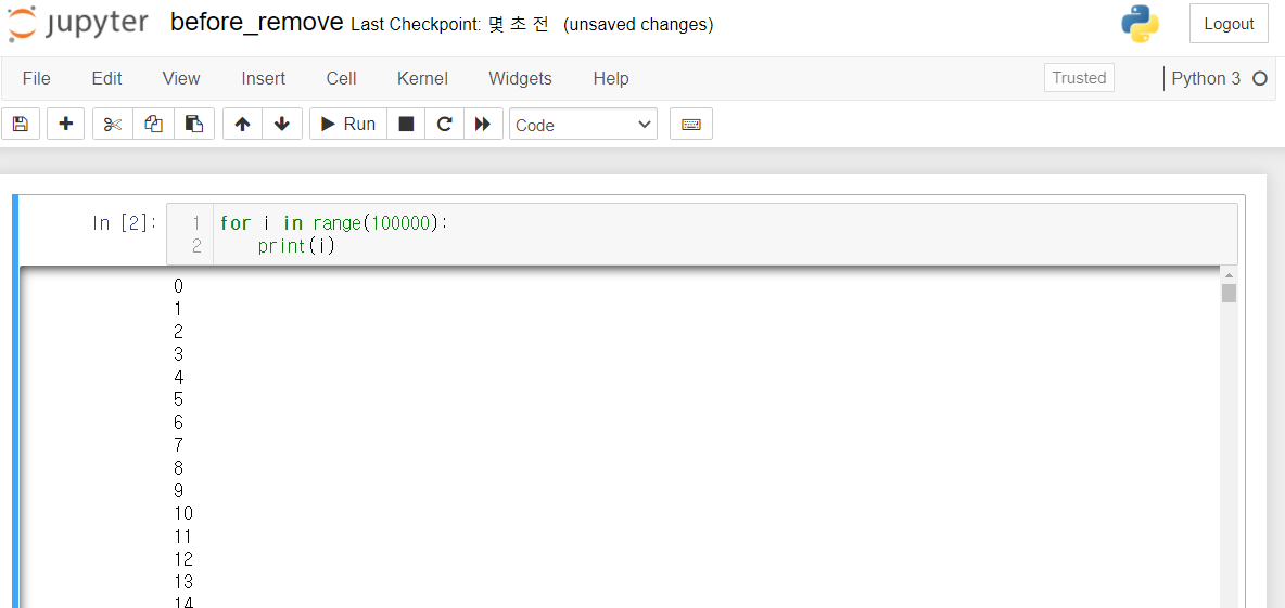 아래와 같이 10만개의 값이 출력된 ipynb 파일이 있다고 하자.