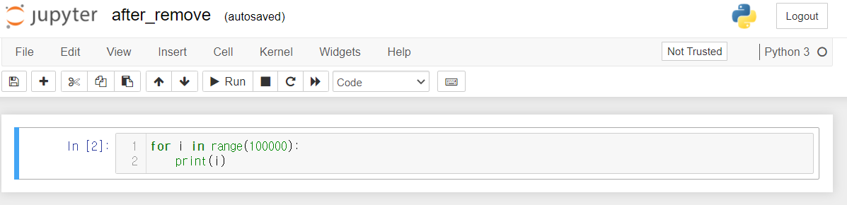 이러한 현상이 발생했을 때, 아래 코드를 이용하면 출력 결과를 모두 삭제해서 파일 크기를 줄일 수 있다.