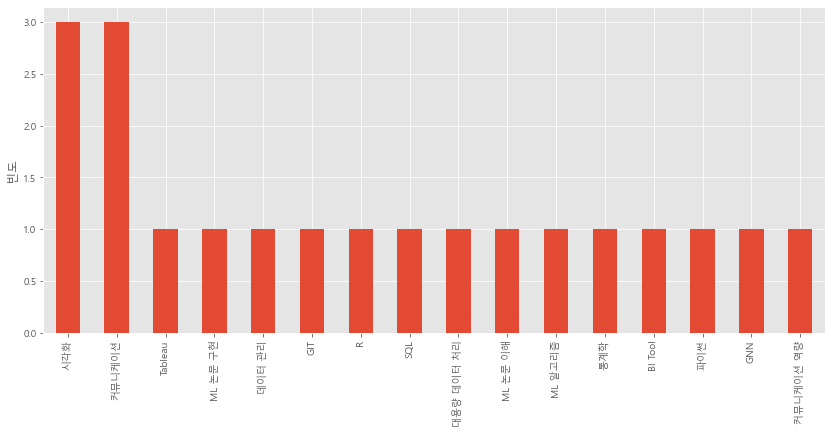 직무스킬과 관련된 자격요건 분포는 다음과 같습니다.