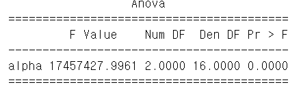 F value가 가장 큰 (P-value가 가장 작은) alpha가 가장 중요함을 알 수 있습니다.