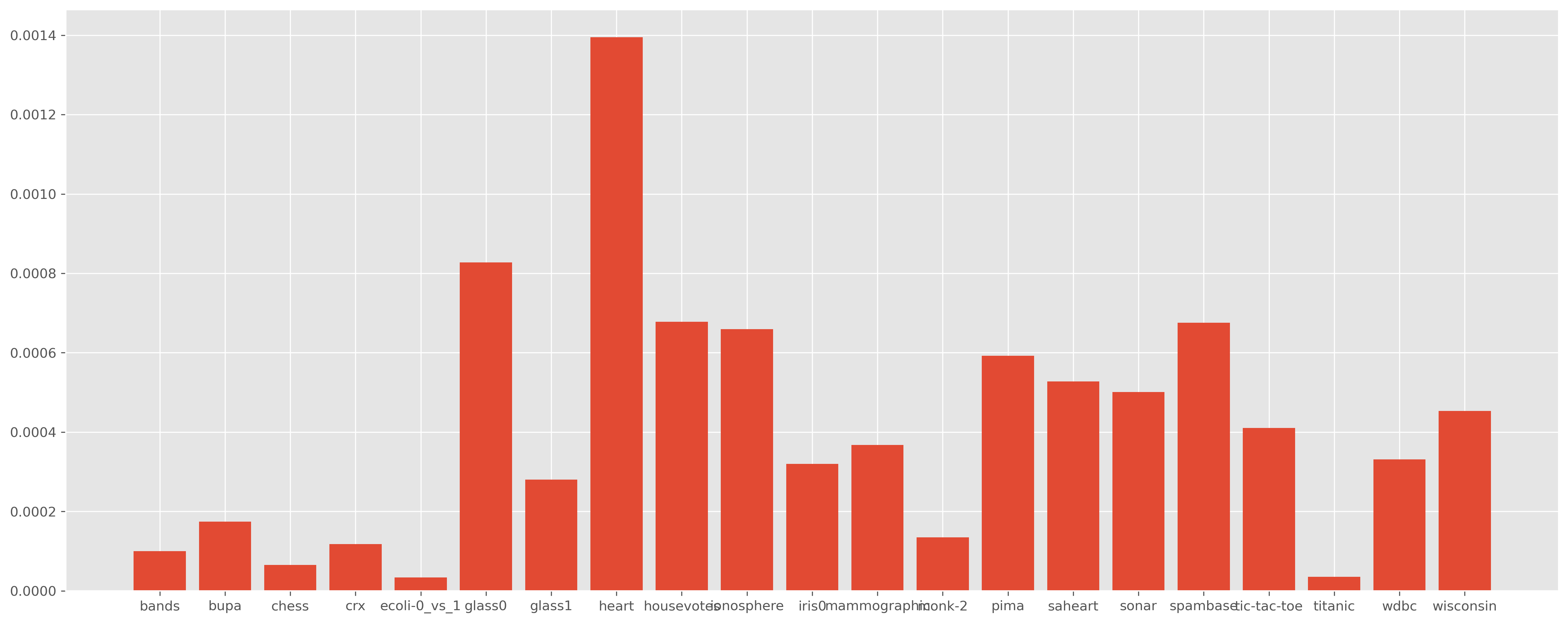 거의 1에 가까운 데이터(housevotes, mammographic)도 있고, 0.2보다 작은 데이터(iris0, chess)도 있는 것을 알 수 있습니다.