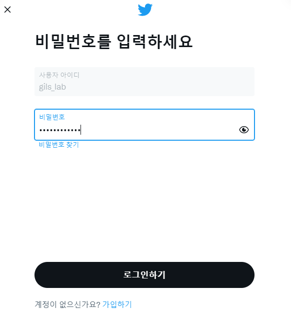 만약 트위터 ID가 없다면 Sign Up을 눌러 가입합니다.