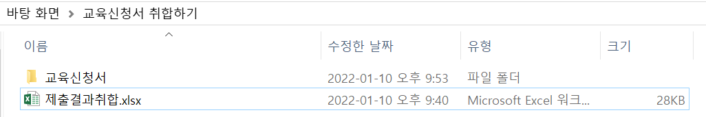 따라서 전체 데이터는 "교육신청서 취합하기 폴더"에 다음과 같이 있습니다.