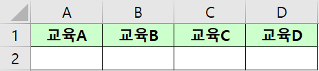 한 회사에서 직원들에게 네 종류의 교육 A, B, C, D 가운데 어느 교육을 듣고 싶은지 교육신청서에 작성해서 제출하도록 했습니다. 이 회사의 직원은 총 1천명이고 이 가운데 일부는 다음과 같은 엑셀 양식의 교육신청서를 작성했습니다.